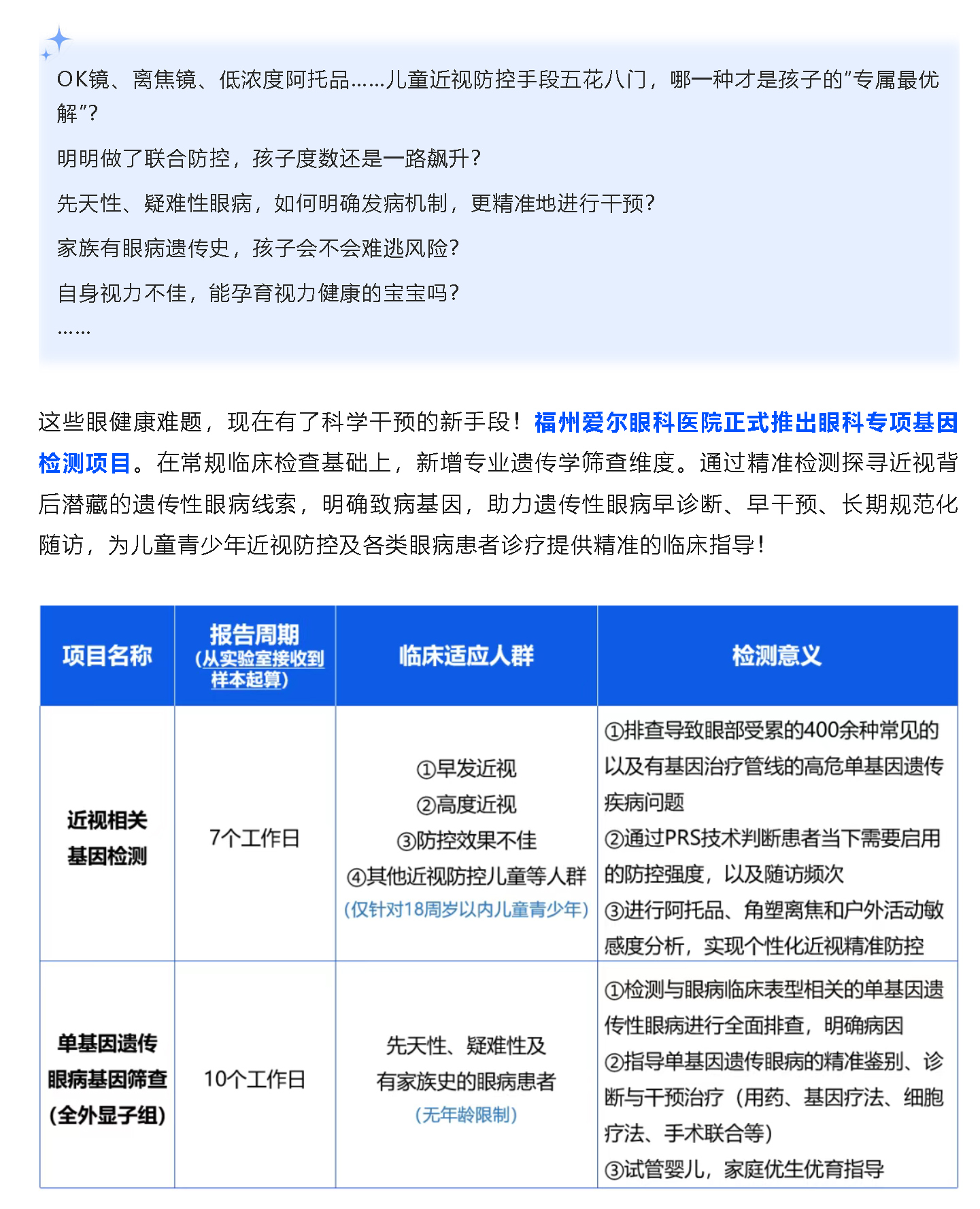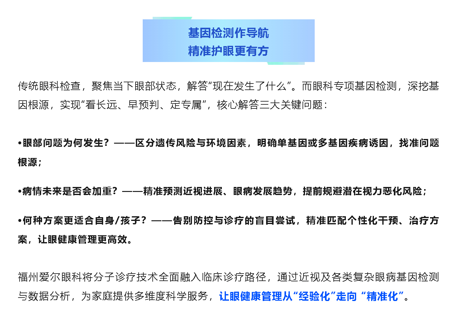 重磅消息!福州爱尔眼科专项基因检测项目上线,打造近视防控与眼病诊疗精准化路径