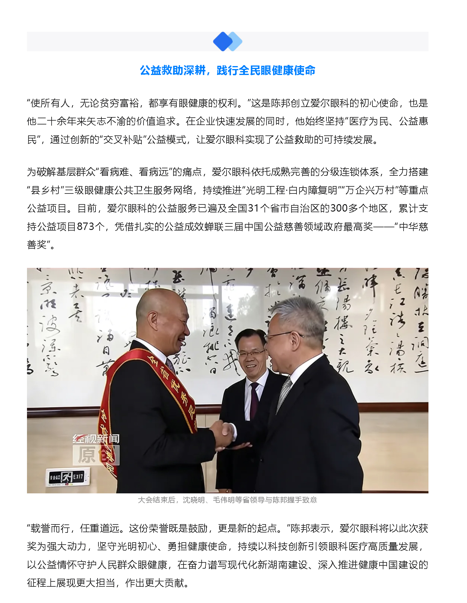 湖南“新春第一会”召开,授予爱尔眼科董事长陈邦等100人“新湖南贡献奖全省优秀民营企业家”称号